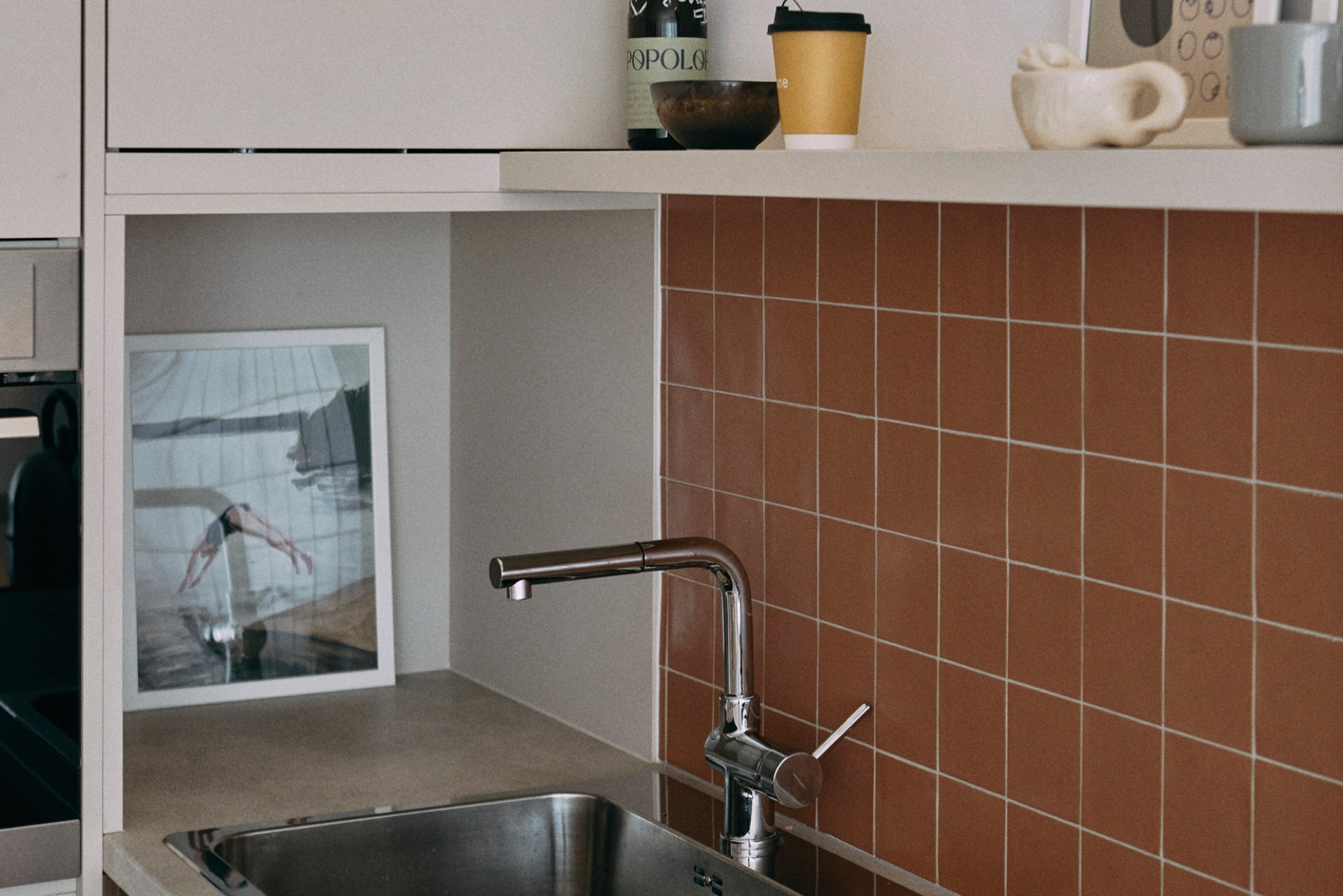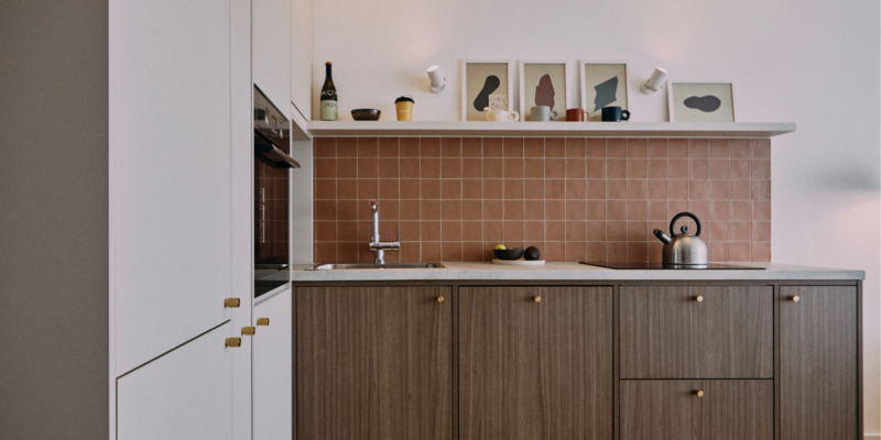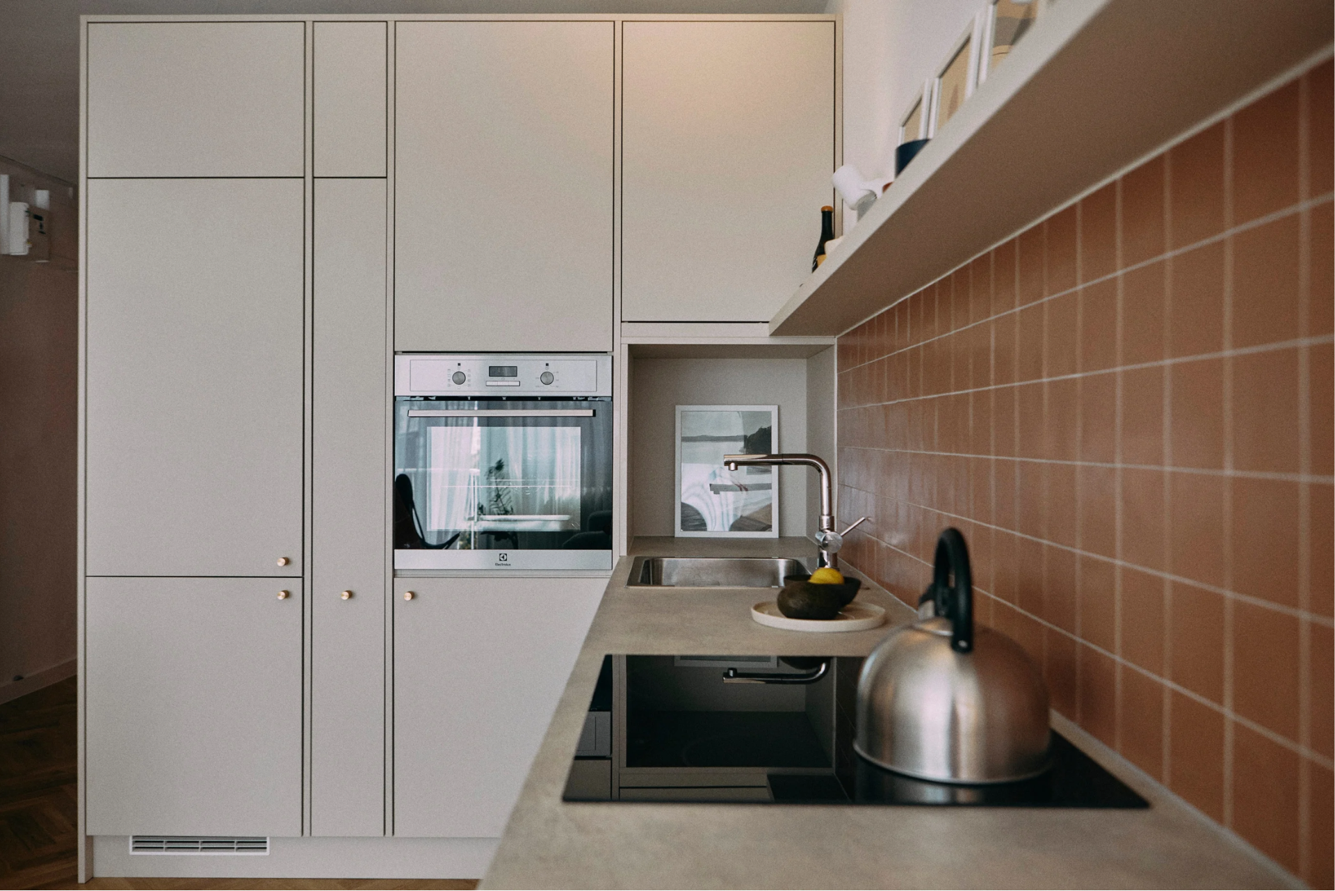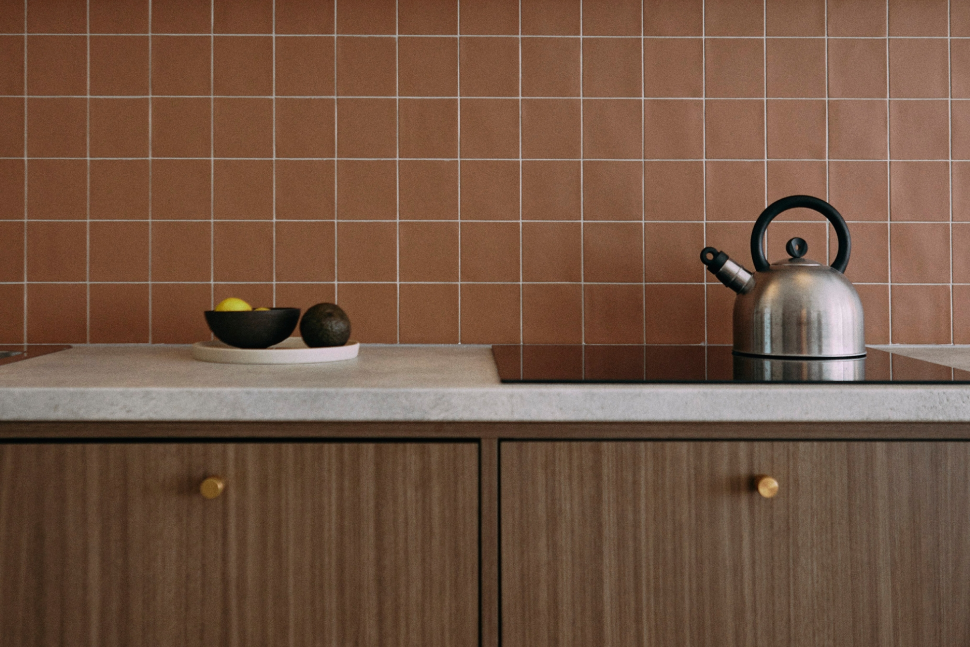 Kuhinja je postala središnji element oko kojeg se kreirala cijela estetika stana: kombinacija pločica od terakote, toplog drva i odmjerenih boja.